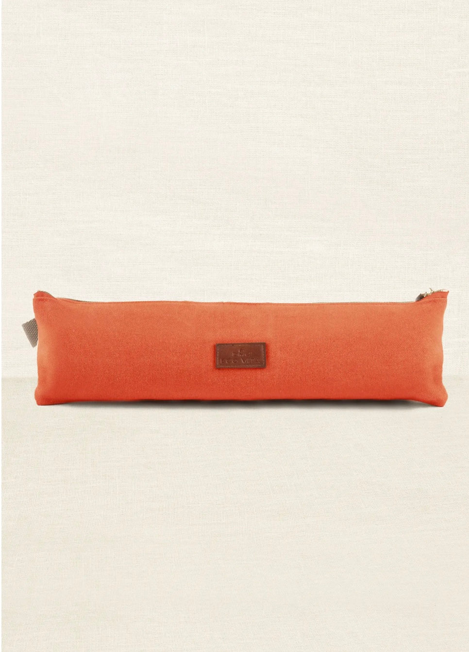 the main canvas fabric is composed of 70% recycled cotton and 30% recycled polyester. available in khaki and terracotta colourways. this needle bag is part of the Nomad Bag Collection, a range of chic, sustainable storage solutions for makers commuting and travelling