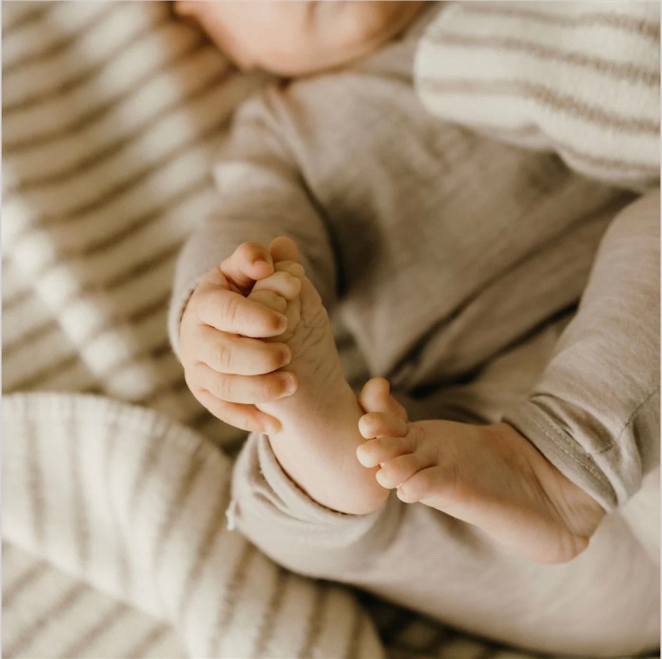 keep your baby deliciously snug for outdoor adventures in the sand & cream striped pure wool baby blanket